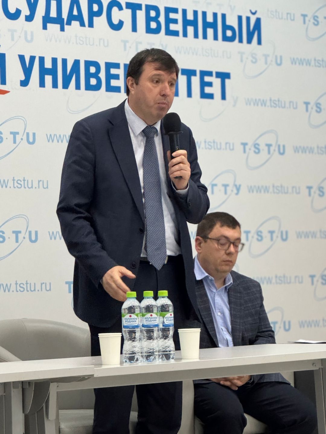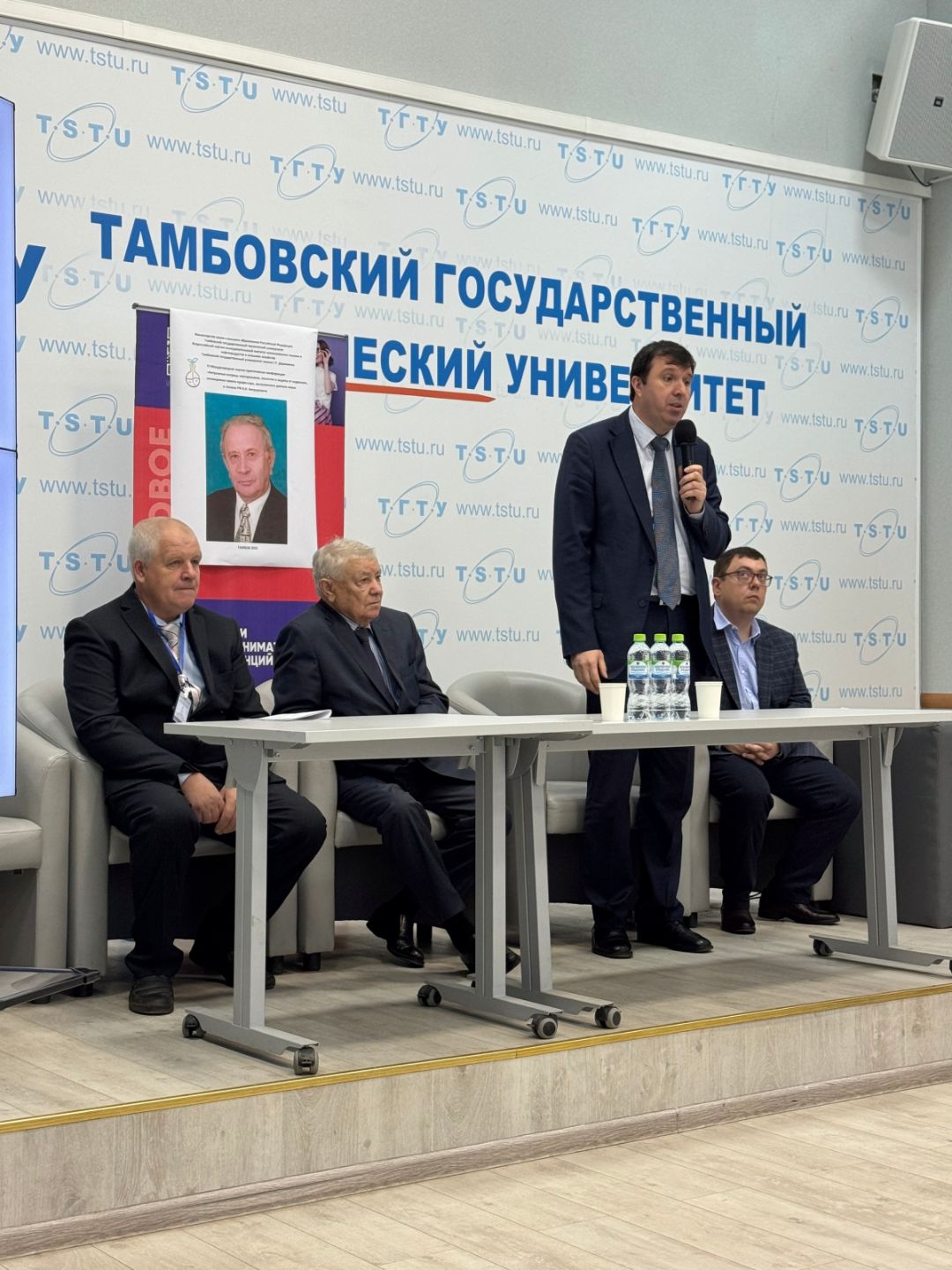 Открытие конференции. С приветственным словом выступает ректор ТГТУ, д.т.н., проф. М.Н. Краснянский. Слева: директор ВНИИТиН, д.т.н., проф. В.В. Остриков; справа налево: председатель оргкомитета, д.т.н., профессор С.И. Лазарев, проректор ТГУ им. Г.Р. Державина, д.б.н., профессор А.А. Гусев.